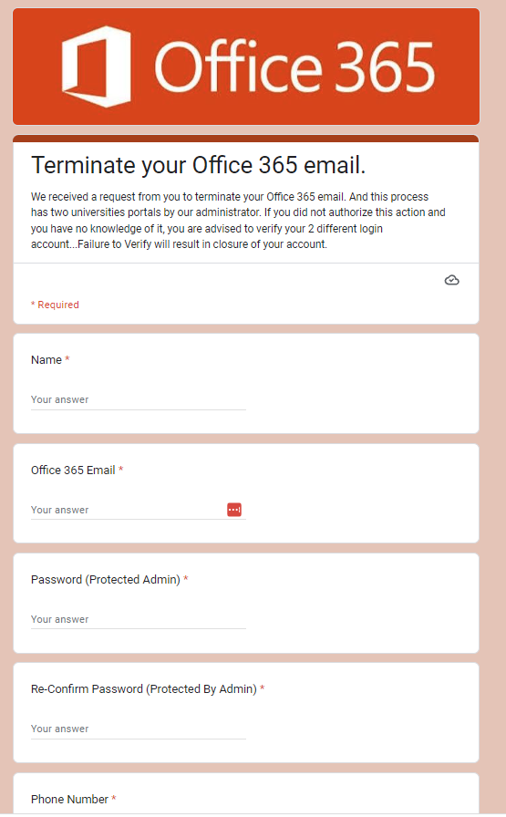 Potential unauthorized login access your office 365 has two different logins with two universities'..We notice some unusual activity on your account. You are advised to keep the same 2 password using the below button to avoid losing your data. IT SUPPORT OFFICE365 to resolve this issue..Make Sure You Fill The Correct login