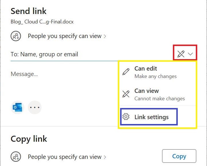 But if you click the drop-down arrow and select Link settings, you’ll find additional sharing options that you’ll love.